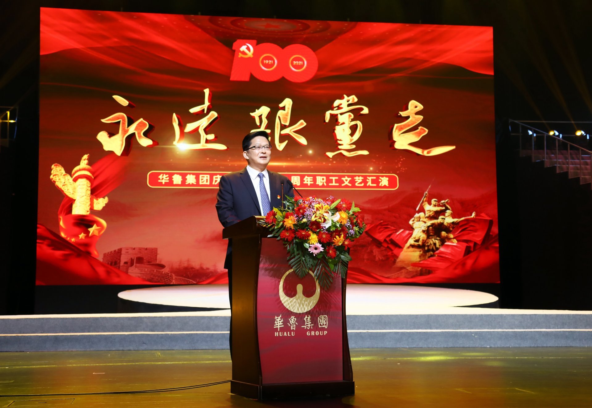 集團黨委書記、董事長樊軍發表了催人奮進的匯演致辭。他表示,今年是中國共產黨百年華誕。回望百年風云,我們黨在內憂外患中誕生、在磨難挫折中成長、在攻堅克難中壯大,團結帶領全國人民戰勝千難萬險,實現了從站起來到富起來、強起來的偉大飛躍。歷史充分證明,只有中國共產黨,才能救中國;只有中國共產黨,才能發展中國,才能引領中華民族實現偉大復興。他指出,紅色是華魯最鮮明的底色,開放是華魯最靚麗的名片。華魯集團應黨和人民需要而生,順改革開放潮流而興,始終堅持心無旁騖攻主業,銳意進取深改革,各項經營指標屢創歷史新高,這是華魯人向黨的百年華誕的最好獻禮。面向未來,集團上下將以習近平新時代中國特色社會主義思想為指導,牢記使命勇向前、埋頭苦干開新局,奮力創造華魯集團更加美好的明天!